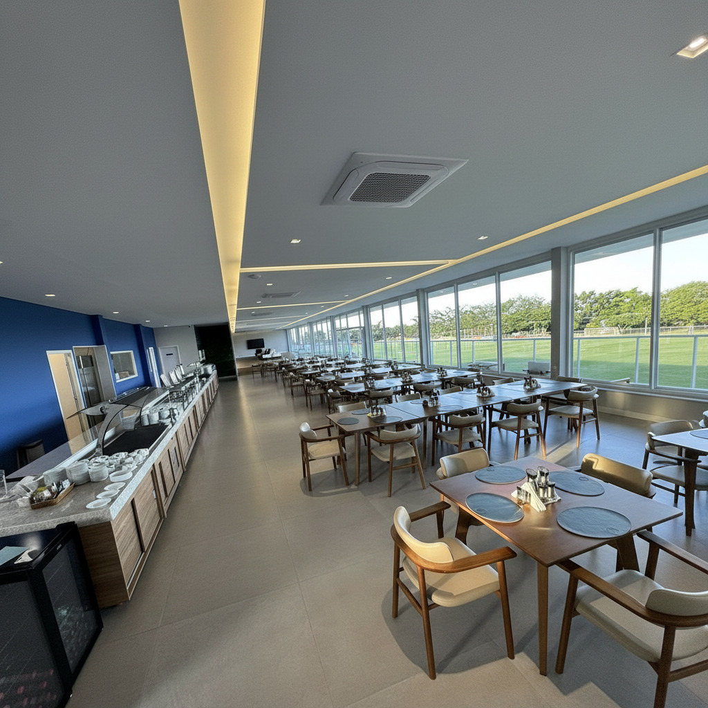 Um dos maiores projetos da Rajão, com participação desde a idealização, projeto e execução em parceria com a equipe técnica do clube. Produção, acessos e logística foram condicionados à rotina do CT, exigindo coordenação avançada, engenharia aplicada e entrega consistente em um ambiente de alta responsabilidade.